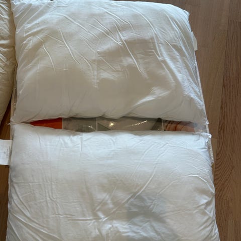 2 helt nye uåpnede innleggsputer i dun selges.