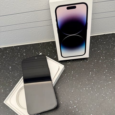 Meget pen brukt iPhone 14 Pro med både skjermbeskyttelse samt plast deksel "bumper" selges. 128 GB. Nypris sirka 15.000 NOK. iPhone 14 Pro er utstyrt med et profesjonelt 48 MP trippelt kamerasystem med vidvinkel-, ultravidvinkel- og telelinse. iPhone 14 Pro kan skilte med et avansert kamerasystem i en klasse for seg. Dette er den første iPhonen med hovedkamera på hele 48 MP, Quad Pixel-sensor og Photonic Engine, med forbedret bildebehandling som gir et fantastisk løft til bilder tatt i svakt lys.