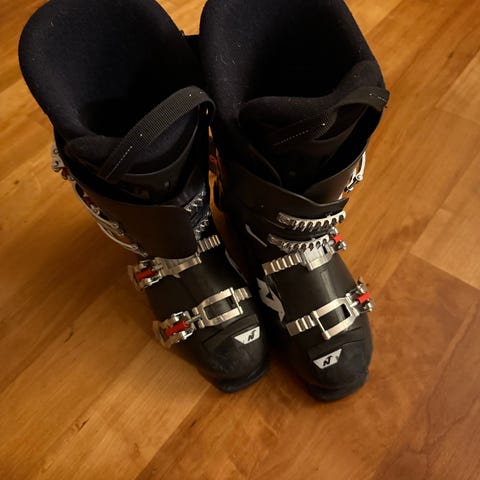 Nordica skistøvler i størrelse 26.5 /305 mm, med svart og rød farge. Støvlene har tre metallspenner for justering og god passform. Laget for alpint bruk.