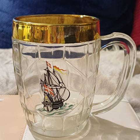 Øl ølmugge seidel keramikkrus krus kopp keramikk retro seilbåt seilskute båt skipsfart skip