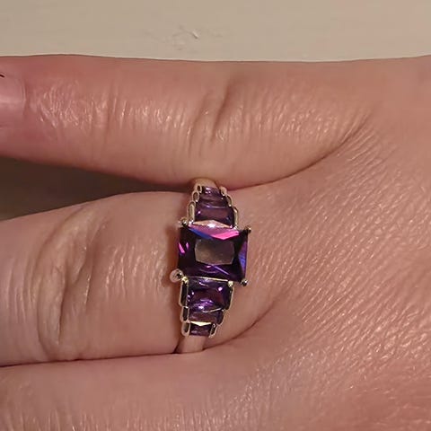 stor vakker ring med lilla steiner