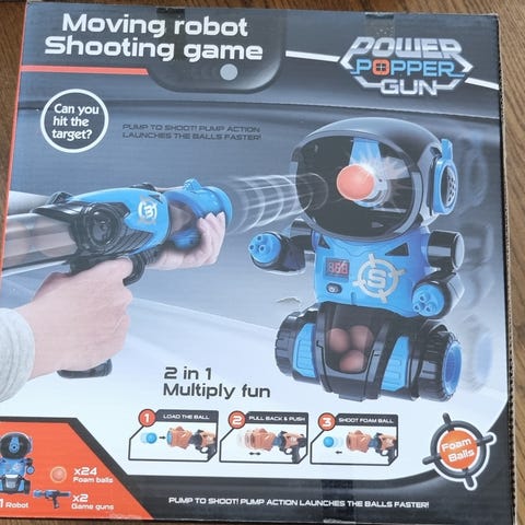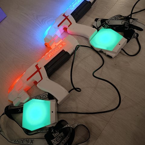 2 stk laser pistoler med treffpunkt. Kan utvides til flere. Kan endre farge på teamet