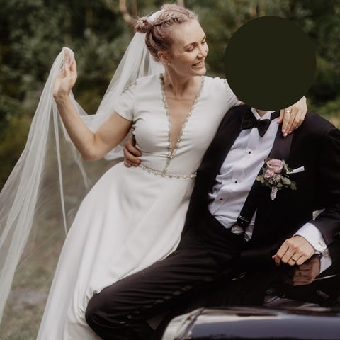 Under oppbevaring har den fått noen flekker, men vi fjernet veldig raskt og enkelt en av de, så om kjolen sendes på rens burde det ikke være noe problem.