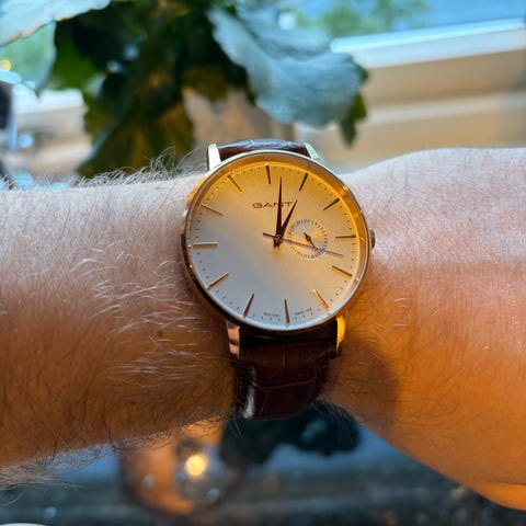 GANT herre klokke med svart skinnreim