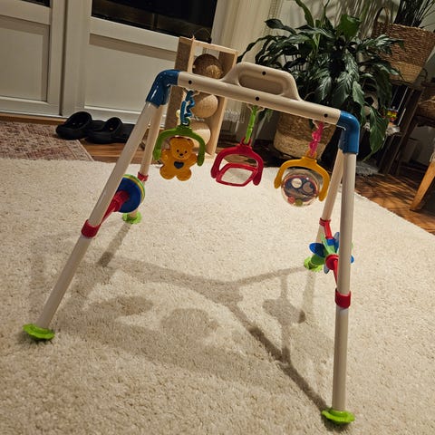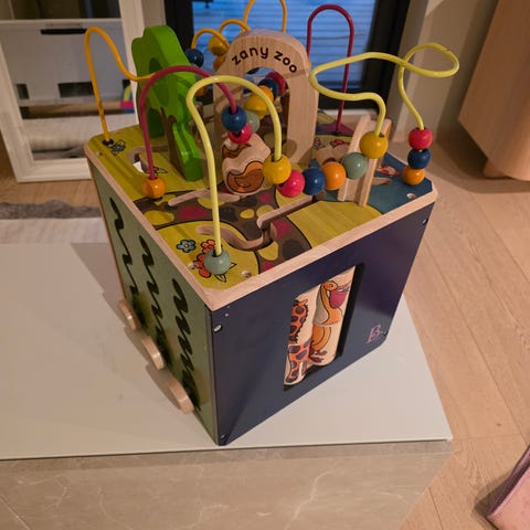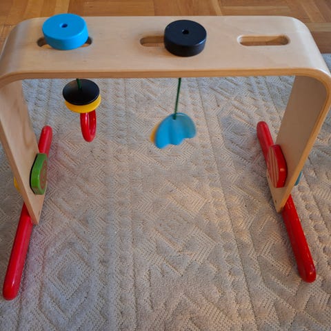 BRIO Barneleke aktivitetsstativ i tre med hengende leker. Designet for små barn for å stimulere motoriske ferdigheter og sanseopplevelser.