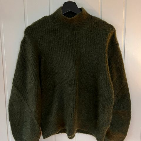Thane genser i størrelse L, laget av 100 % ull. Genseren har en beige farge og er produsert med kabelstrikkmønster.