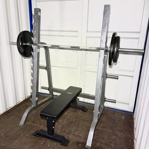 Abilica squat rack, justerbar benk, olympisk stang + 85 kg vekter