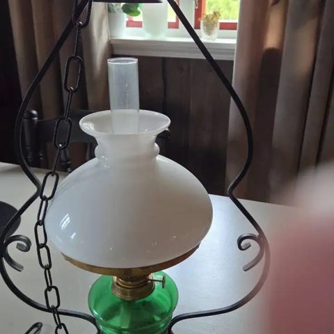 Hel og pen oljelampe, ingen hakk el skader. Har vært i bruk frem til vi nå omreder.