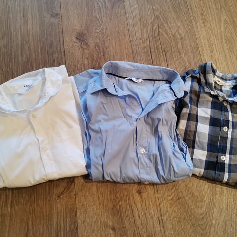 To hvite, en mørk blå og en lys blå skjorte.