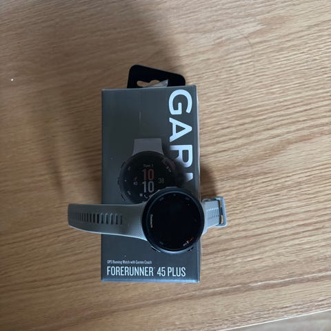 Garmin Forerunner 45 GPS-løpeklokke i svart farge. Klokken har funksjoner for løping og GPS-sporing. Egnet for bruk under trening og daglig aktivitet.