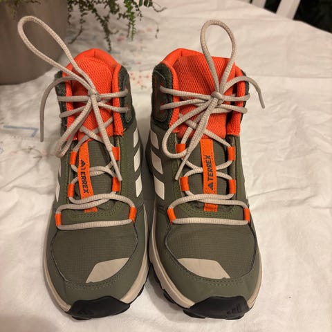 Adidas barnesko for unisex i størrelse 37,5. Skoene er svarte og egnet for barn. De har snøring for justering og en solid yttersåle.