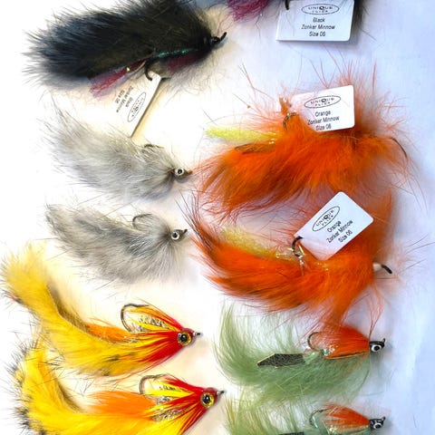 Her er flere forskjellige størrelser, alt fra smått til 11-12 cm store, ufortynget, balansert med conehead eller blytråd og tyngsten som synker bra ned i vannlagene. Flesteparten av disse er varianter eller basert på kjente og godt etablerte fluemønstre!