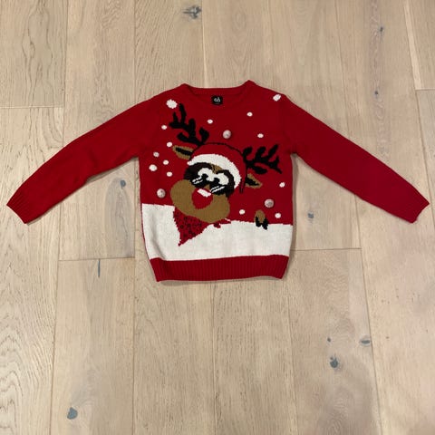 Str: 11/12år rød genser med reinsdyr