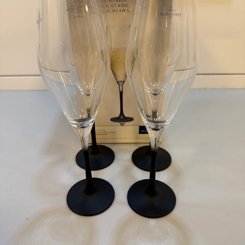 Holmegaard Cabernet lysestaker i glass. Settet inneholder to lysestaker designet for tynne lys. Lysestakene har en elegant og enkel form, egnet for dekorasjon og belysning i hjemmet.Høyde 15cm.