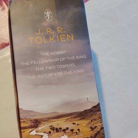 Selger en samling på tre bøker fra JRR Tolkien, Silmarillion, The Hobbit og The Lord of the Rings i 50th anniversary utgave.