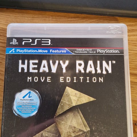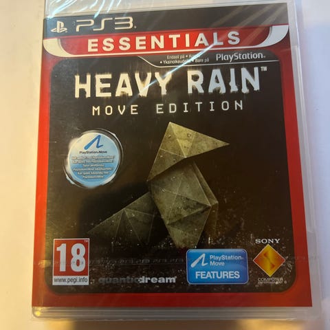 Heavy Rain Move Edition for Playstation 3. Spill i Essentials-serien som krever PlayStation Move-bevegelseskontroller. Aldersgrense 18 år.