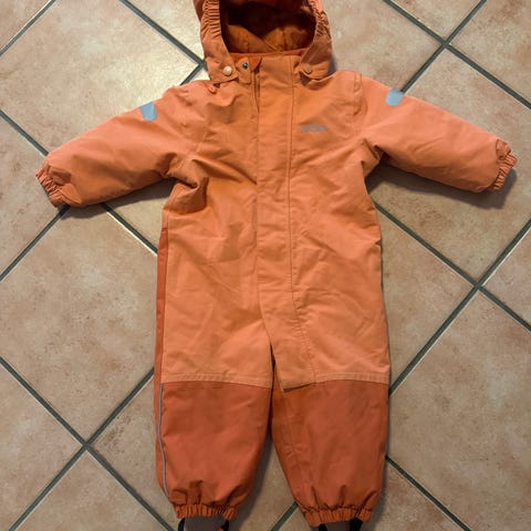 Reflex Barneheldress i størrelse 86. Dressen er laget av Gore-Tex liknende materiale, og har en nydelig brent oransje farge. Passer for både gutter og jenter.