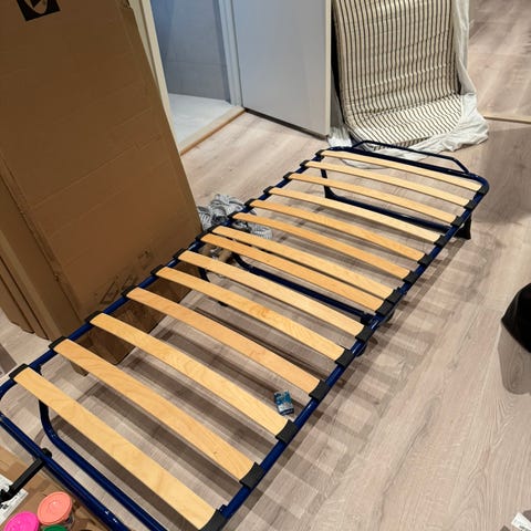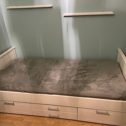 Godt brukt seng, størrelse og detaljert tilstand ukjent. Perfekt for reserve-, gjeste- eller ungdomsrom.