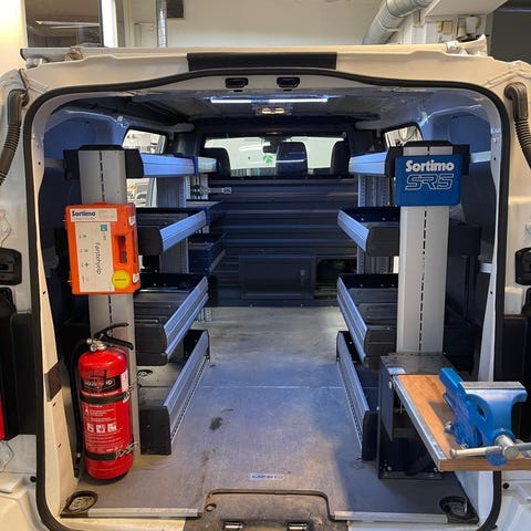 Kvalitetsinnredning Sortimo SR5 som gir god orden og effektiv lagring i varebil. Passer de fleste varebiler.