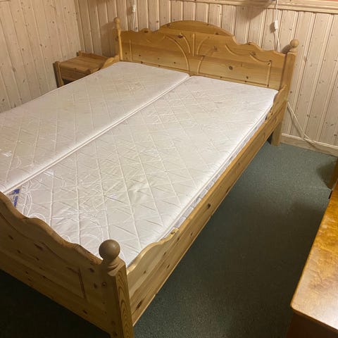 Sengen deles i 5 deler for frakt. Sider, ender og sengebunn. Må hentes.