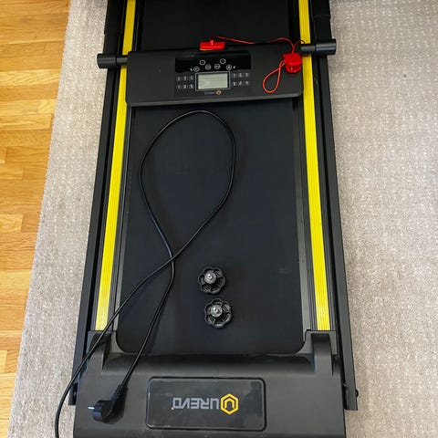 Enkelt sammenleggbart design for å forbedre plassutnyttelse: Sammenleggbar med bare ett steg! Størrelsen når den er sammenlagt er 121x66x14 cm (L x B x H). Det kompakte designet gjør det enkelt å lagre den hvor som helst, til og med under sengen eller sofaen tar den opp minimalt med plass. UREVOs nye sammenleggbare tredemølle er nå mindre og mer praktisk, og veier bare 22.5 kg.