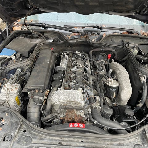 Mercedes-Benz motor. Motoren er brukt og vist på bilder.