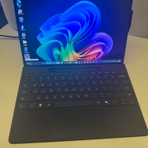 Selger Surface pro 11 med tastatur, pen og lader. Kjøpt alt fra Microsoft store 03.02.2025, veldig lite brukt. Har eske til alt sammen, ta kontakt ved spørsmål. Bilder kommer!