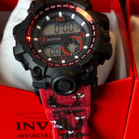 Klokken har svart farge og robust design. Den har digital skjerm med flere funksjoner og slitesterkt gummirem.