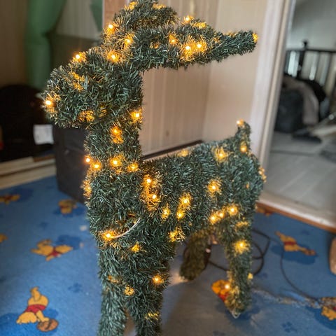 Nydelig utendørs juledekorasjon laget i kunstrotting. 260 varmhvite micro LED-pærer. Høyde 105 cm. 5 meter lang ledning.