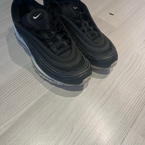 Nike AirMax 97 i størrelse 44. Fargen er svart. Skoene er designet for generell bruk og har en slitesterk såle. Materialet fremstår som syntetisk med tekstildetaljer.