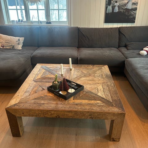 Selges da den ble litt for stor for vår spisestue. Ble kjøpt på Finn for noen uker siden. Pen og god sofa og sitte i.