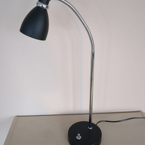 Kul messing lampe med justering på to punkter så man får lyset dit det behøves. Fin å ha på Arbeidspulten, lampet skjerm i glass og kan byttes ut om ønskelig.