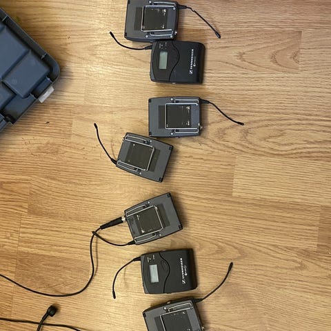 Komplett med originale sargfester. Mikrofonene er brukt og har noen bruksmerker, men ingen skader i grill eller annet. Lynraskt å rigge opp til trommer, og i tillegg er det en fenomenal mikrofon til blåsere og annet...