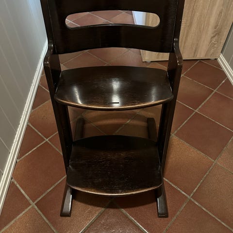 Når barnet ditt er gammelt nok til å sitte uten hjelp, kan du bruke Angel Feast, som er en høy stol med justerbar og avtagbar fotstøtte.