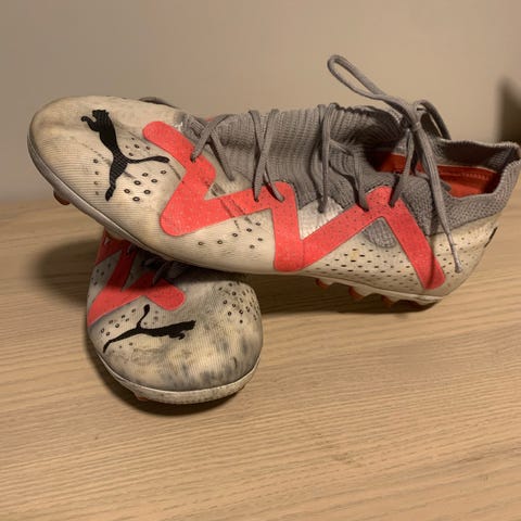 Puma fotballsko i blå og rosa farge. Skoene har knotter under sålen for bedre grep på gressbaner. Passer til bruk på fotballbanen.