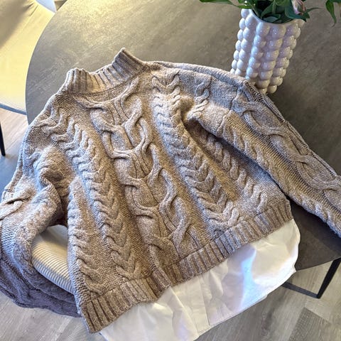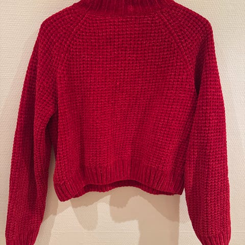 Strikkegenser fra ginatricot, tror den er one size, men den sitter som en M/L, oversized. Litt croppet cut, men den går ca ned til hoftene, så ikke en lang strikkegenser. Lite brukt.