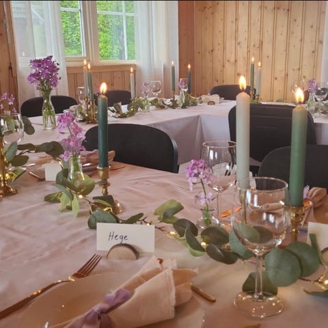 Duker, kubbelys, vaser, dekorasjon utleie.