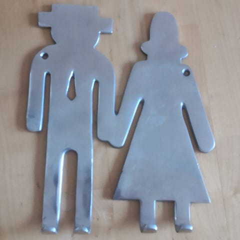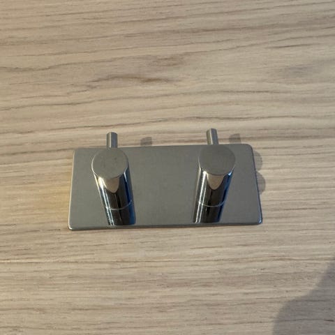 Knagger i metall, inkludert to skruer med muttere og to skruer til å feste/skru fast i vegg