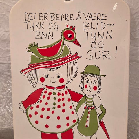 Fargen er dus blå med mørkere blå, håndmalt slynge-dekor rundt, og den har noen små nagg/produksjonsprikker i glasuren, men fremstår ellers i brukbar vintage stand.