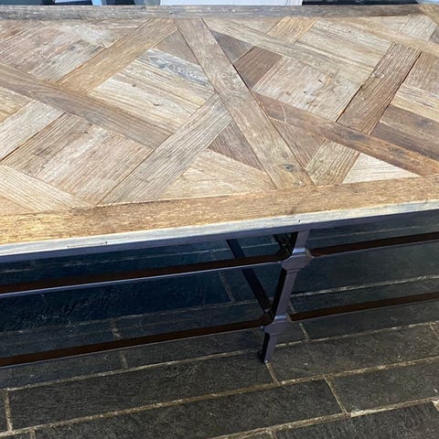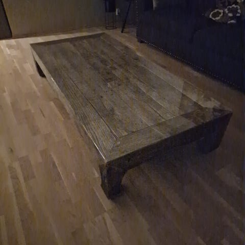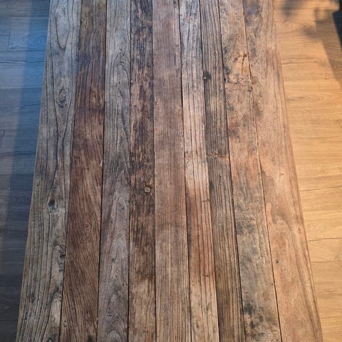 Rustikt salongbord i resirkulert treverk fra Home & Cottage. Bordet har en rustikk look og har derfor mange merker og fargeforskjeller. Har også fått flere merker etter bruk som passer bordet godt. Se nærbilder. Selges fordi vi ikke har videreført denne stilen i nytt hus. Må hentes.