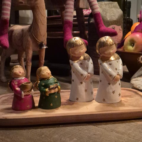 Søkeord engel engler trefigur treengler julepynt jul dekor Candy Design Norway norsk design rød gull salmebok flette vintage retro pyntefigur FINN torget