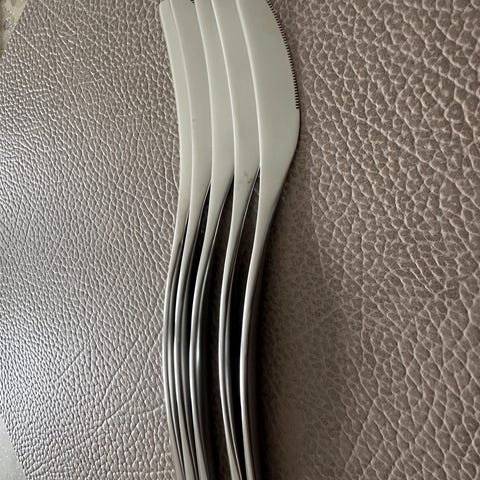 disse er produsert hos Norstaal før stelton overtok produksjonen. 8 stk kniver som aldri noen gang har blitt brukt. selges samlet kr. 400,-