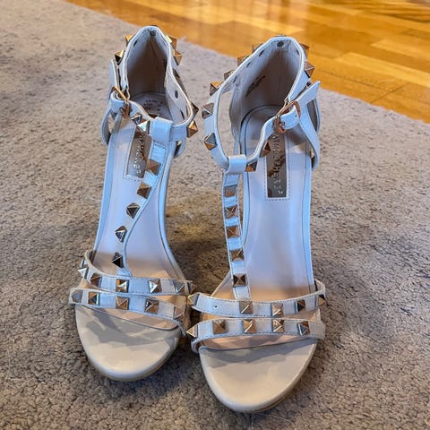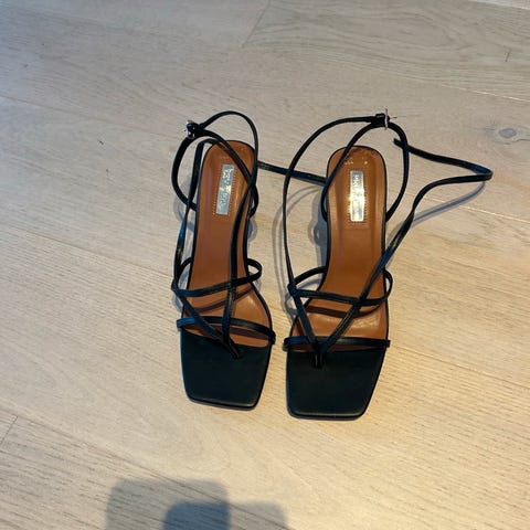 Selger et par helt nye sorte platåsandaler med bast/espadrille-kilehæl. Aldri brukt ,kun prøvd hjemme, lappene henger fortsatt på. Strappy design med firkantet tupp og gullspenne detalj. Komfortable og perfekte til sommer, fest eller hverdags.