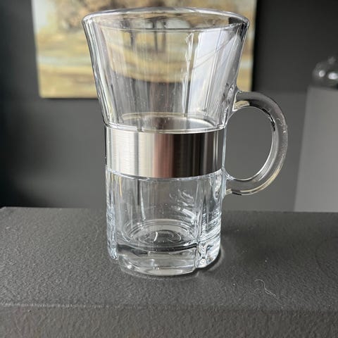Rosendahl Grand Cu drikkeglass 6 stk. Hver kopp er laget av klart glass og har en hank for enkel håndtering. Designet for bruk til varme og kalde drikker. Aldri brukt.
