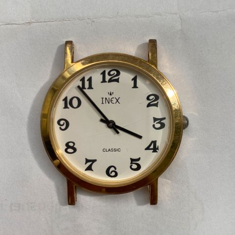 Inex Dame klokke med brun skinnrem og rund urskive. Klokken har vannresistens og bakdeksel i rustfritt stål. Urverket er japansk quartz.