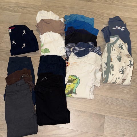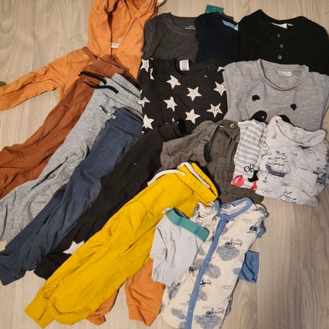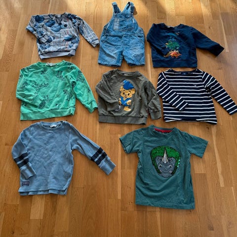 - 1 sett med bukse og genser med hai fra Lindex, pent brukt, men trykket begynner å få noe slitasje etter vask.