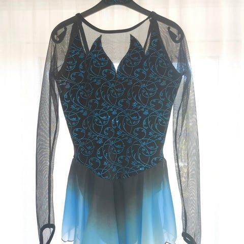 Fin drakt med farger og detaljer. Se mål for størrelse, brukt av jente 9-11 her. Svært elastisk stoff.