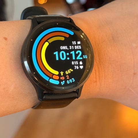 Garmin Venu 3/ smartklokke lite brukt. Selges da den ikke blir brukt til sin ytelse. Klokken viser tid, dato, skritt, body batterikaloriforbruk, pulsmåling m.m. og er egnet for daglig bruk og trening. God batteritid på flere dager.