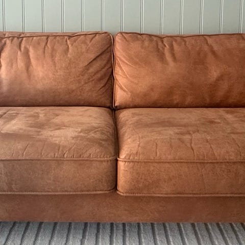 Sofaen er brukt. Jeg anbefaler en generell rens av tekstilet/overflaten for å få den til å skinne optimalt igjen.
