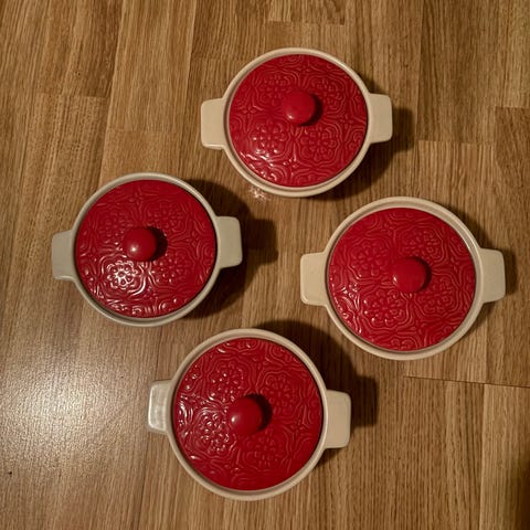 Bolia Pirrha tallerkensett bestående av flere tallerkener og serveringsfat med dekorativt motiv av en baker ved en vedovn. Tallerkenene har et fargerikt design med detaljer som brød og krydder. Egnet for bruk som servise i kjøkken eller spisestue.